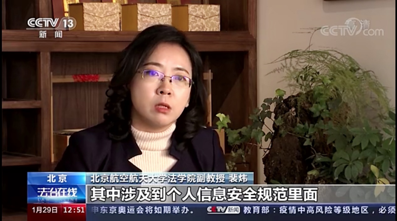 我院裴炜副教授日前接受中央电视台新闻频道采访,围绕公民个人信息保护主题,就大数据杀熟、App隐私政策冗长、用户账户注销难等相关问题发表观点。该采访于2021年1月29日央视新闻频道《法治在线》栏目播出。