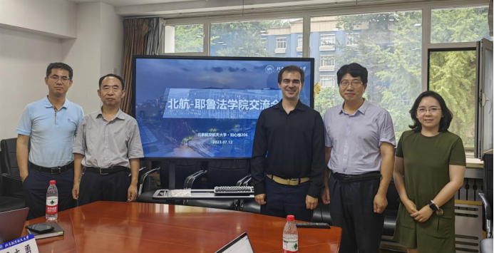 周友军书记对陆凯先生的到访表示欢迎,指出北航法学院高度重视与耶鲁大学法学院以及蔡中曾中国研究中心的合作。周学峰副院长介绍了北航法学院近年来的研究特色、国际合作等基本情况,提出推进双方师生互访、交流学习、合作研究等,并期待双方在数字法学、网络空间国际治理等领域的学术合作。