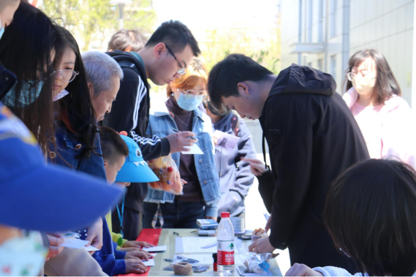 临近正午,外场志愿者们开始投入到志愿活动工作中,来往新北区的师生、小朋友等参与到活动中。小朋友们的加入更是为外场增添了一抹亮色,也使得外场活动的气氛更加活跃。