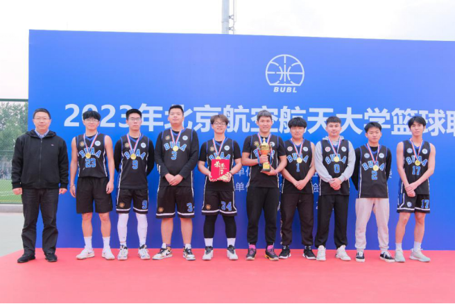 4月23日下午,本届“空天杯”赛事颁奖仪式在学院路校区篮球场举行,校领导、体育部领导、赛事裁判员、各参赛队伍参加颁奖仪式。吕卫锋副校长为总冠军球队颁奖。